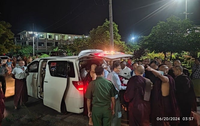 On June 19, on a road south of Mandalay, government soldiers conducting “anti-terrorism operations” against rebel People’s Defense Force fighters opened fire on a car traveling along the highway on the outskirts of Kamma Village, killing a venerable, highly respected 78-year-old monk from Bago who w…