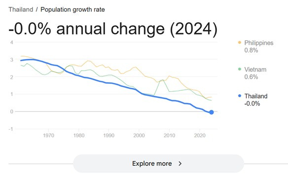 This takes us back to the beginning of the article: the problem of Thailand, which not only faces a numerical workforce decline but an immediate shortage of skills in the digital, robotics, and aerospace sectors, according to a recent report. That cannot be filled with immigration, even if there is some move in by skilled Chinese.